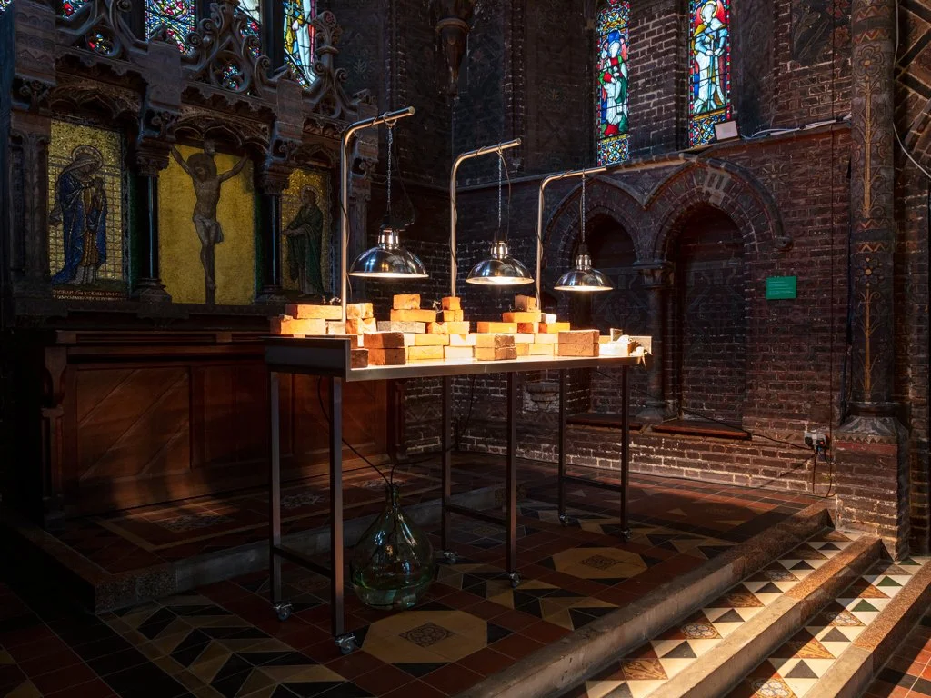 A recipe for scorpions    2021  ceramic, steel, clay, plastic, infrared lamps, electronic mist system, holy basil oil, deionized water